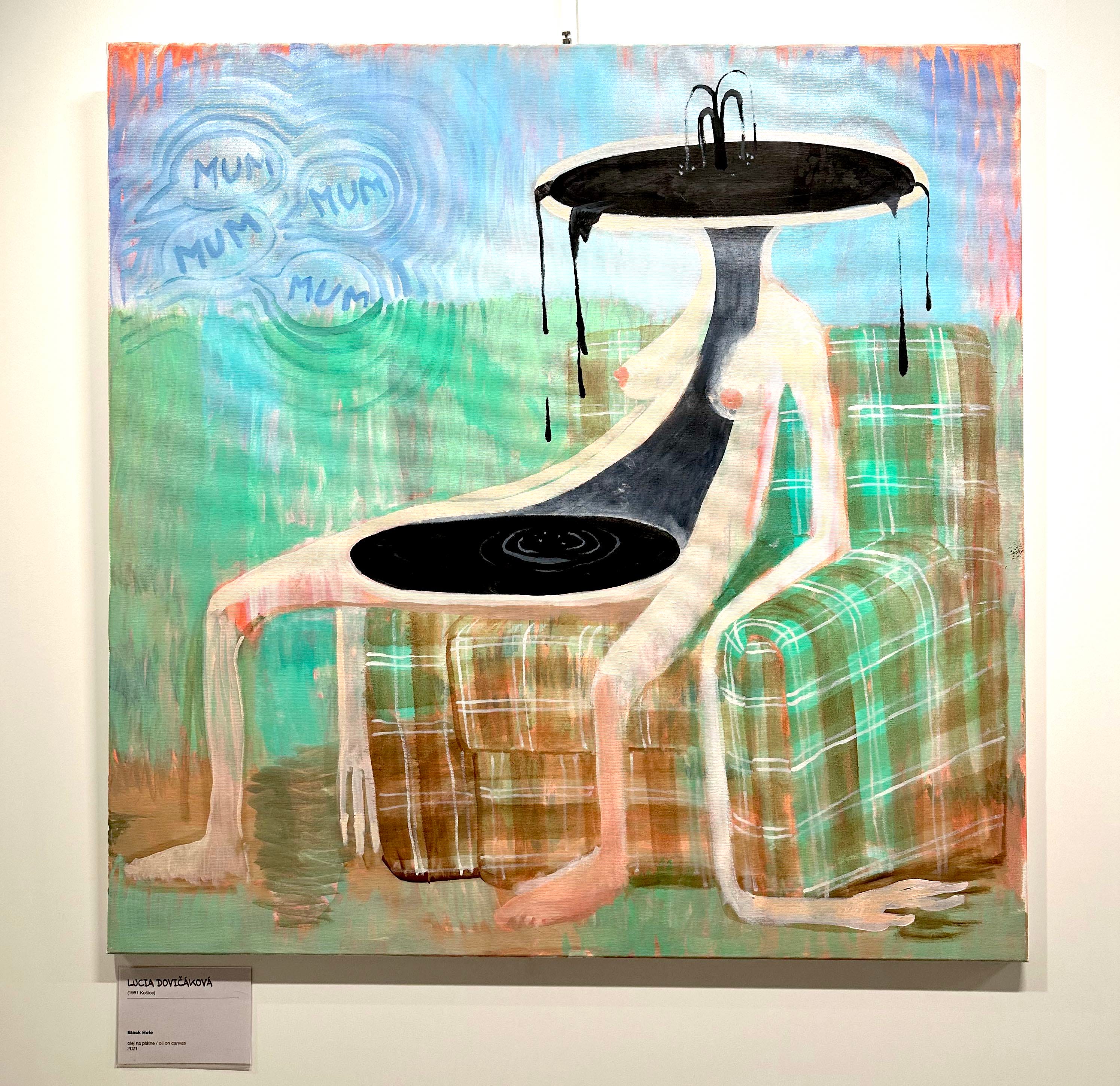 I realised I must make my peace with conceptual art and enjoy it for what it is. There are elements that can inspire me such as ideas behind the work or the use of colour but I am an old-fashioned painter. so naturally my favourite gallery was The Nedbalka Gallery which has paintings from Slovakia dating from the 19th century to the present day. The current exhibition was the artist Lucia Dovičáková. I loved it so much that I bought the accompanying book. Her work tells the story of growing up. From being a young and confident woman, almost Disney like, in a piece called ‘Fairytales, 2006’ through to the harsh reality of being a mum in ‘Black Hole, 2021’. As I stood horrified at this piece two men beside me were laughing at what seemed like a comical composition. As a woman faced with this possibly being a reality in the future, I didn’t find anything funny about it. I found it moving, upsetting and I questioned whether I wanted this to be my future.